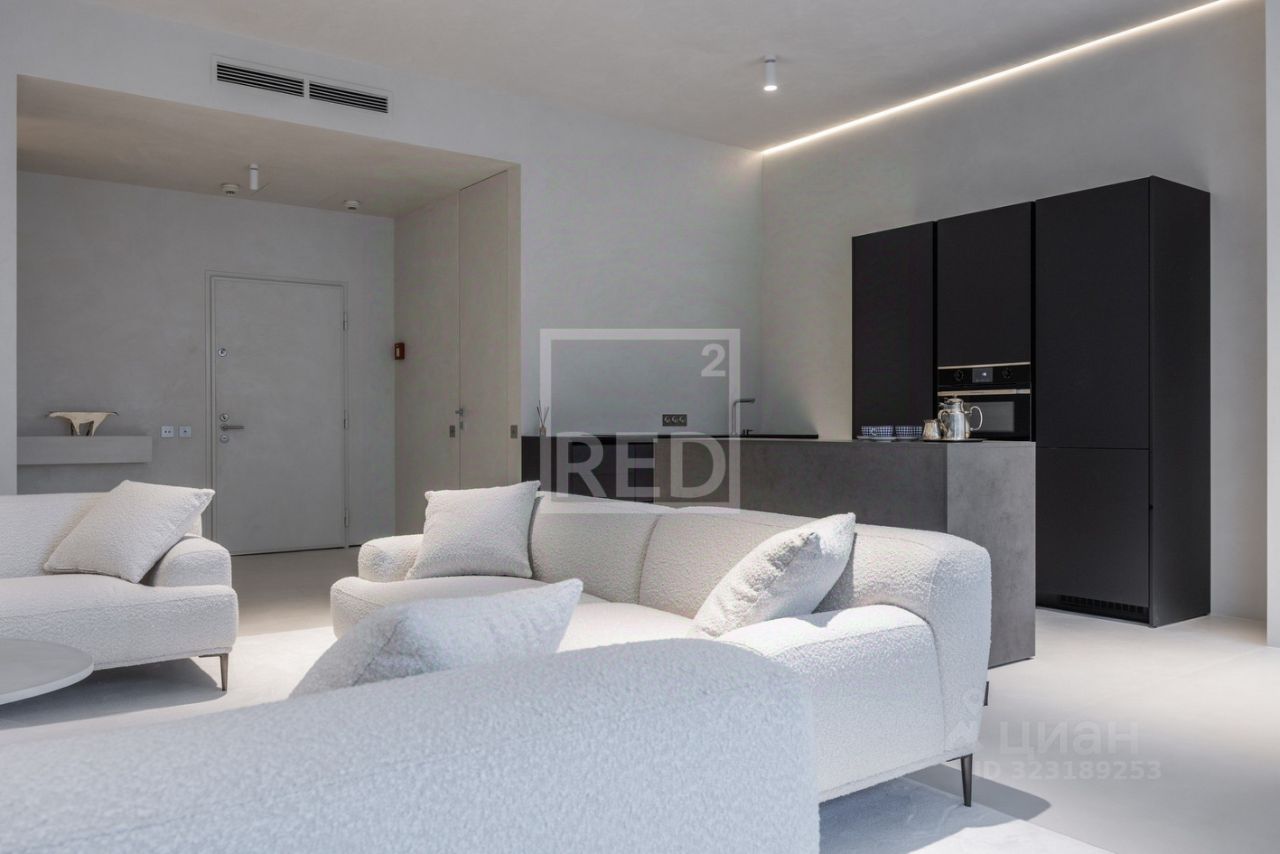 Квартира была создана по авторскому проекту дизайнера из Монако. Это смелый эксперимент в формате open space, где для зонирования использованы не двери, а продуманная геометрия и материалы. Пространство идеально подойдет для одного человека или пары, ценящих свободу, искусство и безупречный вкус. В отделке доминирует микробетон и микроцемент Deco Floors, плавно перетекающий с полов на стены и потолки, создавая целостную, скульптурную среду с высотой потолков 3,5 метра.