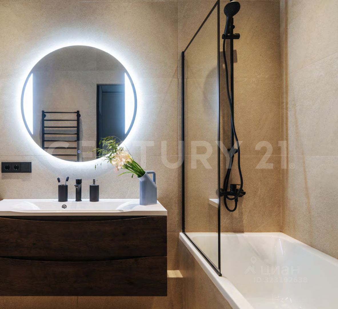 Панорамные окна квартиры ориентированы на северо-западную, юго-западную и юго-восточную стороны света, квартира в любое время дня наполнена естественным светом. Из окон открываются приятные виды на территорию и архитектурный ансамбль жилого комплекса.