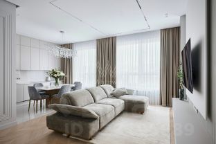 Квартира с дизайнерским ремонтом площадью 110 м² с тремя спальнями в комплексе премиум-класса "Сити Парк" рядом с Краснопресненской набережной.
