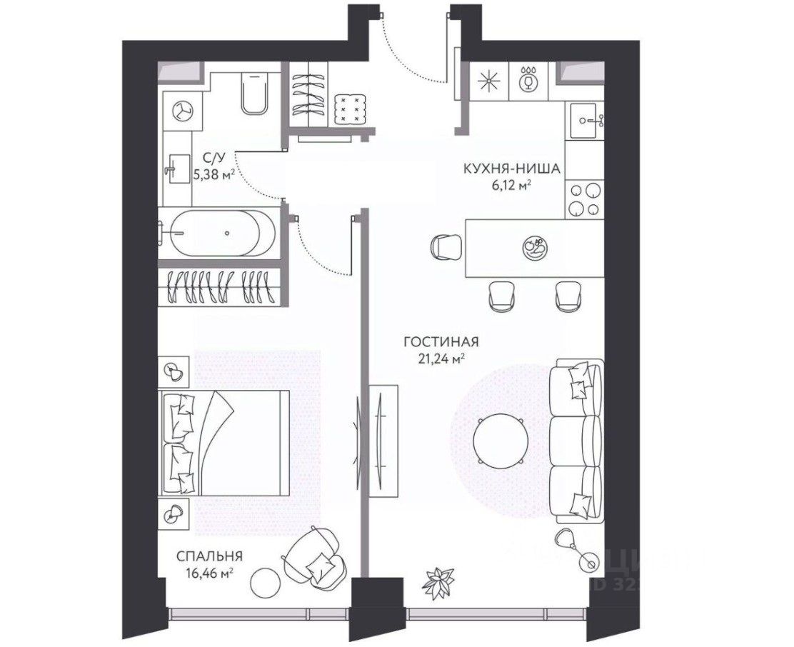 Продаётся 1-комнатная квартира в сданном доме, общей площадью 50,1 кв.м., на 27 этаже.