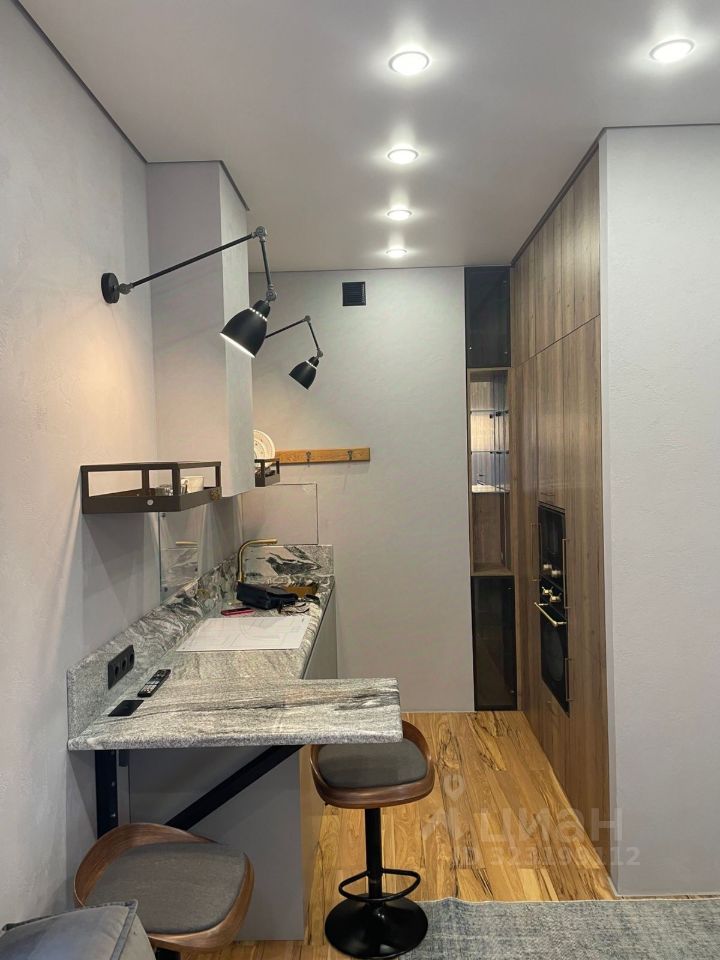 Квартира с дизайнерским ремонтом, который создаёт уютную и стильную атмосферу. Жилая площадь составляет 30 кв. м, кухня — 6 кв. м. В квартире есть совмещенный санузел, а окна выходят во двор, поэтому в квартире всегда тихо и спокойно.