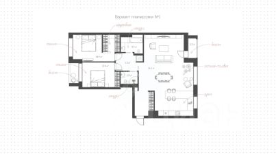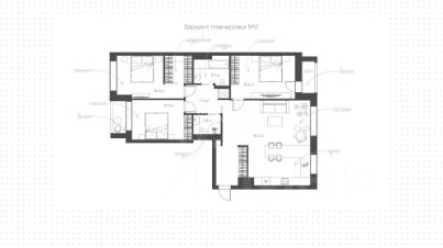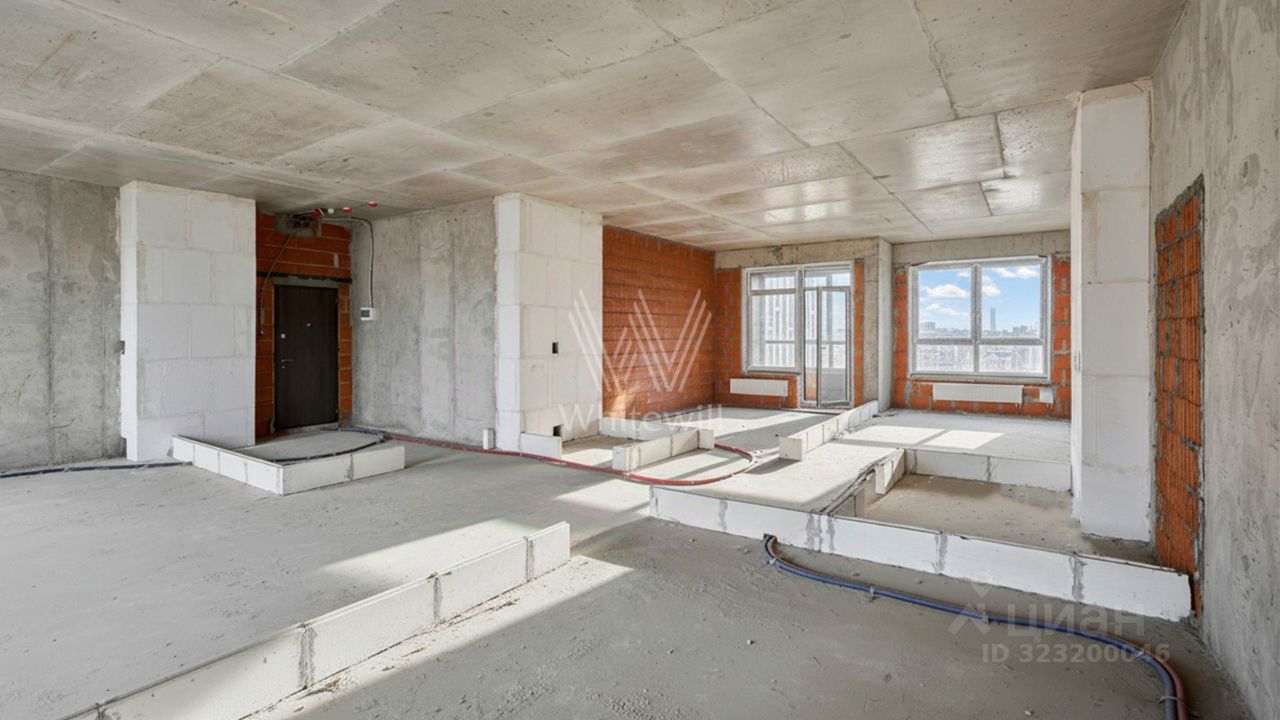 Квартира без отделки, есть возможность присоединить площадь балконов к жилой — тогда общая площадь составит около 115 м². Свободная планировка позволяет организовать кухню-гостиную, две-три спальни, два санузла, гардеробные, два балкона и удобную прихожую.