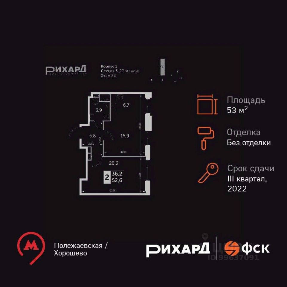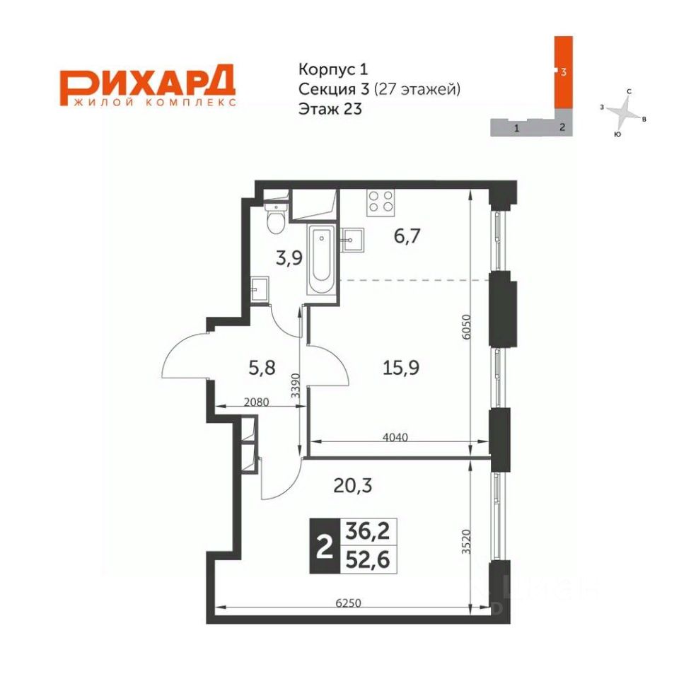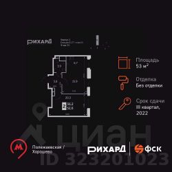 Продаётся 2-к квартира номер 413 общей площадью 53.5 кв.м. на 23-м этаже 27 этажного дома. Без отделки. Цена с учётом скидки!
