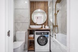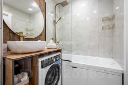 В квартире сделан современный, дизайнерский ремонт с заменой электрической проводки и водоотведением, выровненный пол, гидроизоляция, натяжной потолок, тёплые полы, выводы под кондиционеры.