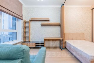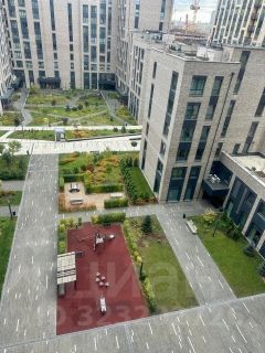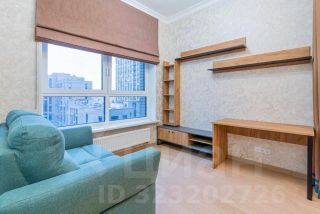 Уютная гостиная зона с большим окном и лоджией - виды на зеленый тихий двор и на башни соседнего ЖК Capital Towers