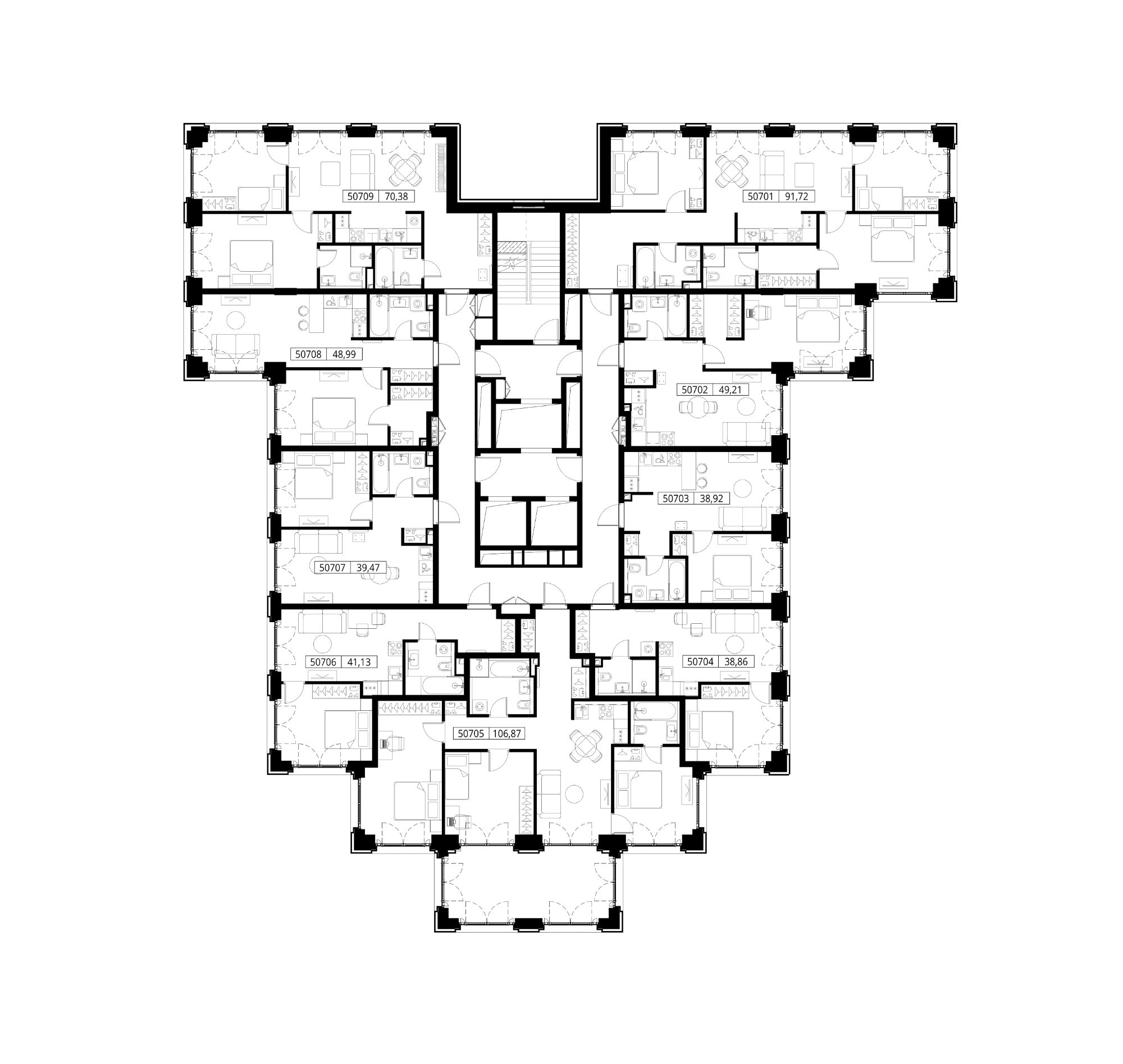 В каждом здании комбинируется максимальное количество и разнообразие форматов квартир: от видовых квартир с зелеными террасами и лоджиями до квартир малого формата.