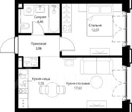 Продаётся 1-комнатная квартира общей площадью 39.57 м² с предчистовой отделкой в ЖК City Вау, квартале Cliff,  на 9-м этаже 15 этажного дома.