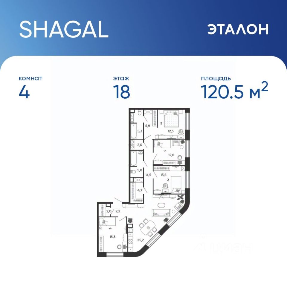 Общая площадь квартиры — 120.5 кв. м, этаж 18 из 27.