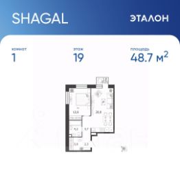 Общая площадь квартиры — 48.7 кв. м, этаж 19 из 19.