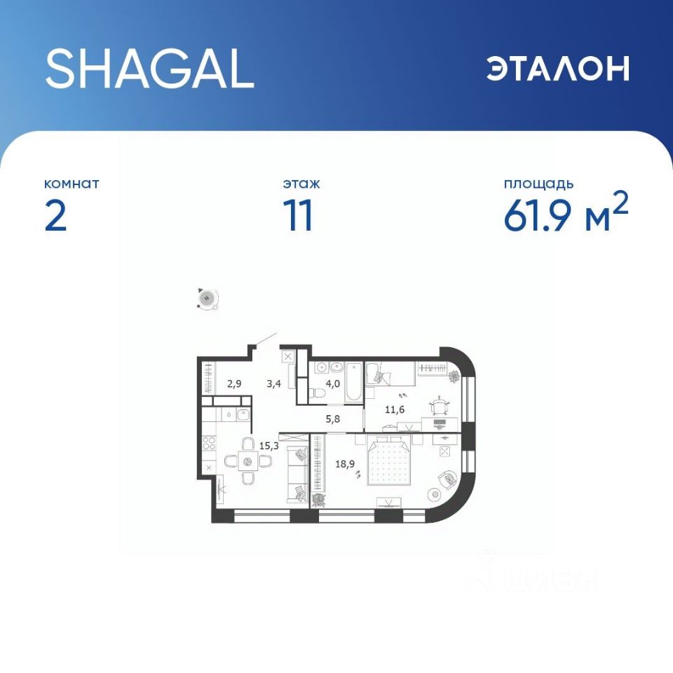 61,9 м²