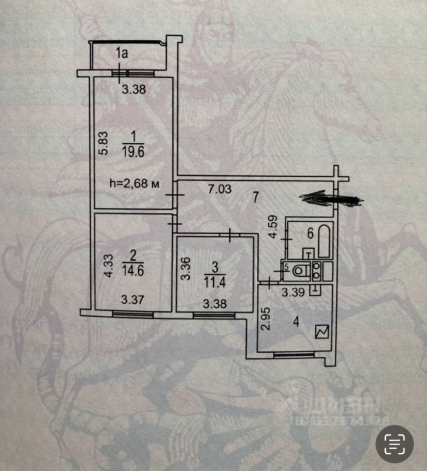 Высота потолков - 2,64 метра. Окна выходят во двор, поэтому в квартире тихо и комфортно.