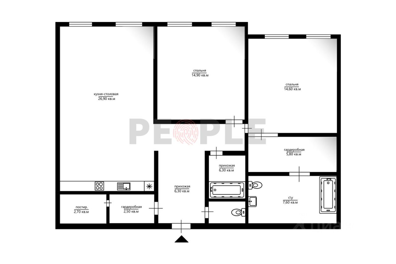 Планировка: кухня-гостиная, 2 спальни, 2 гардеробных, постирочная, 3 санузла.