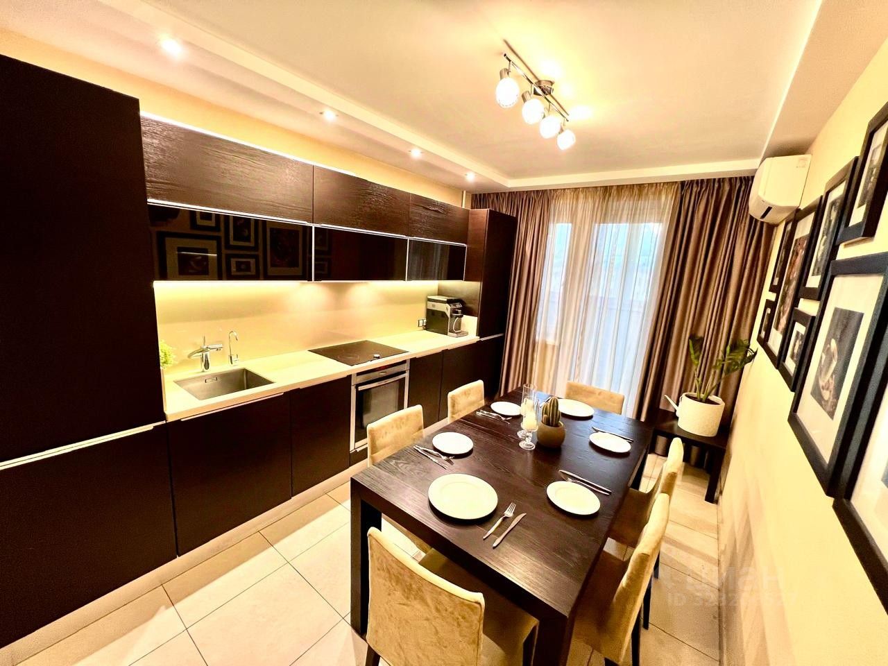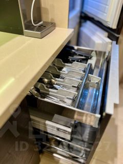 ОБОРУДОВАНИЕ: Варочная панель и духовой шкаф Neff,цельная кварцевая столешница Ligron, вытяжка Kuppersbusch, посудомоечная машина и холодильник Siemens, 2 инверторных кондиционера Daikin, входная дверь Guardian, итальянская мебель Tomasella