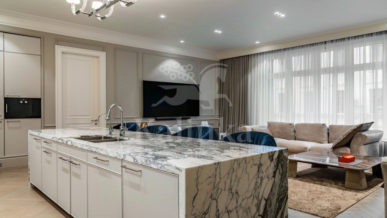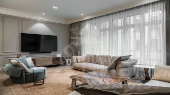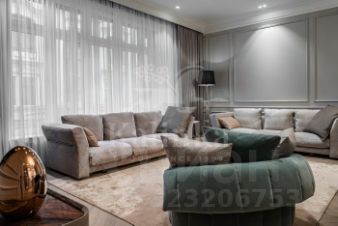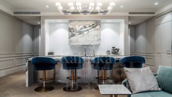 Интерьер квартиры выполнен в неоклассическом стиле с использованием дорогих, натуральных материалов - мрамора благородных оттенков, дуба. Кухня полностью укомплектована бытовой техникой Gaggenau. Гардины Loro Pianа, мебель Longhi и Rugiano, кожаные аксессуары Pinetti и Bork - создают элегантный стиль квартиры, подчеркивая утонченный и взыскательный вкус владельца. Комфорту и удобству жизни способствуют: система умный дом, приточно - вытяжная вентиляция с 2ух-ступенчатой структурой очистки воздуха, индивидуальное увлажнение воздуха, многоуровневая система подготовки и фильтрации воды.