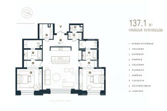 Планировка: просторная кухня-гостиная с арочными панорамными окнами, две полноценные мастер-спальни - каждая со своей личной ванной комнатой и системами хранения, большая гардеробная, гостевой санузел, сервисное помещение.