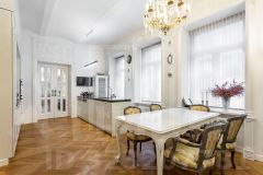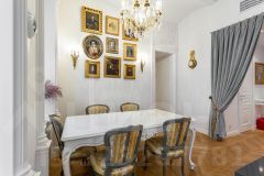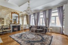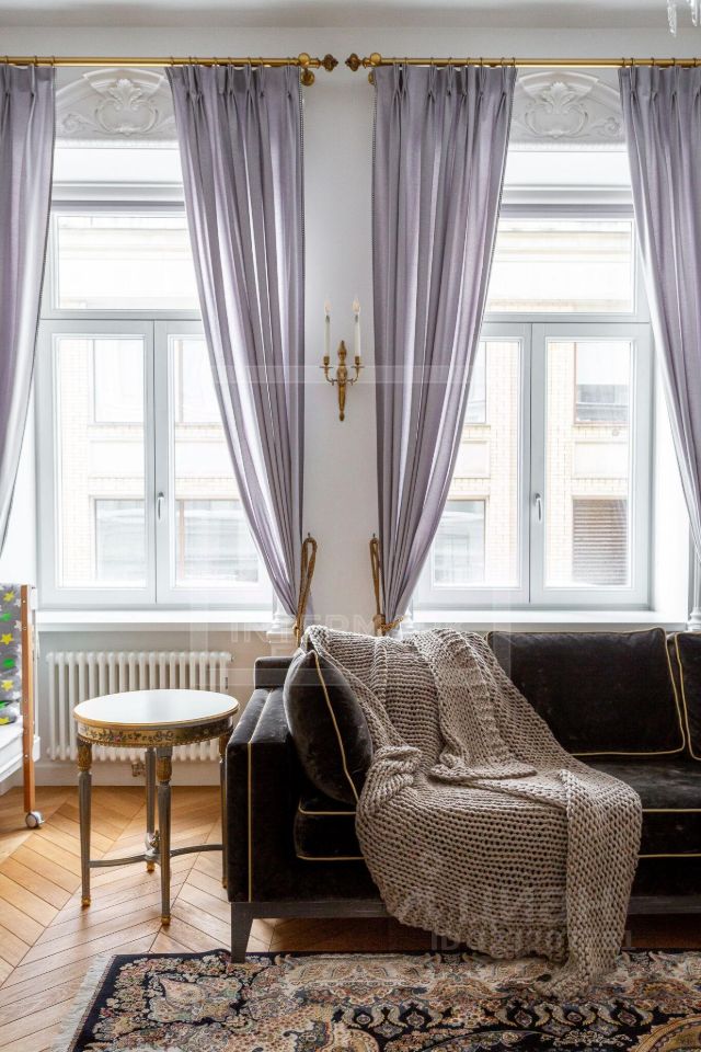 Общая площадь - 105 м2, спланированы: большая гостиная, кухня-столовая с островом, спальня с гардеробной и ванной комнатой, гостевой с/у. Вся мебель, текстиль, дизайнерские предметы интерьера привезены из Франции: люстра 19 века, зеркало 18 века, бра. Сантехника - Villeroy & Boch, техника - Miele. Восемь окон наполняют жилое пространство естественным светом, а высокие потолки 3,2 метра добавляют простора и воздушности.