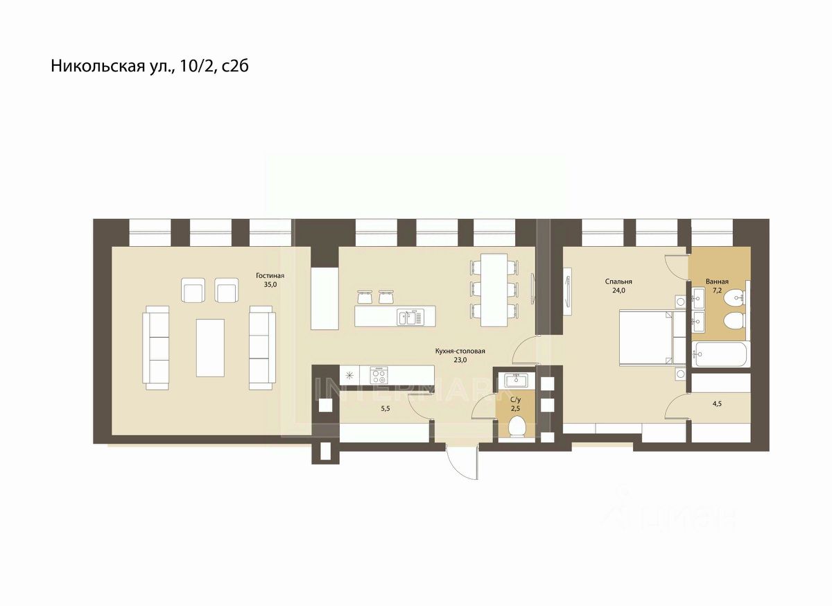ID 64386. ЖК St. Nickolas. Готовый к проживанию апартамент с классическим интерьером и винтажными элементами декора в знаковом доме после реконструкции на Никольской улице.