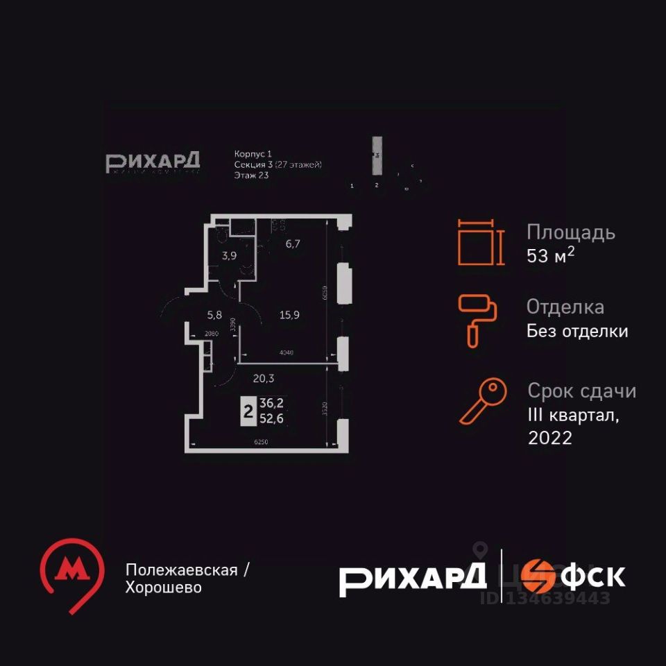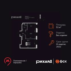 Продаётся 2-к квартира номер 413 общей площадью 53.5 кв.м. на 23-м этаже 27 этажного дома. Без отделки. Цена с учётом скидки!