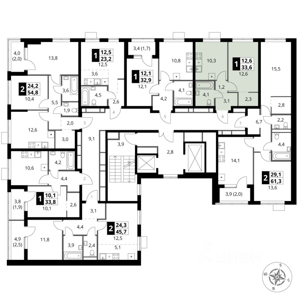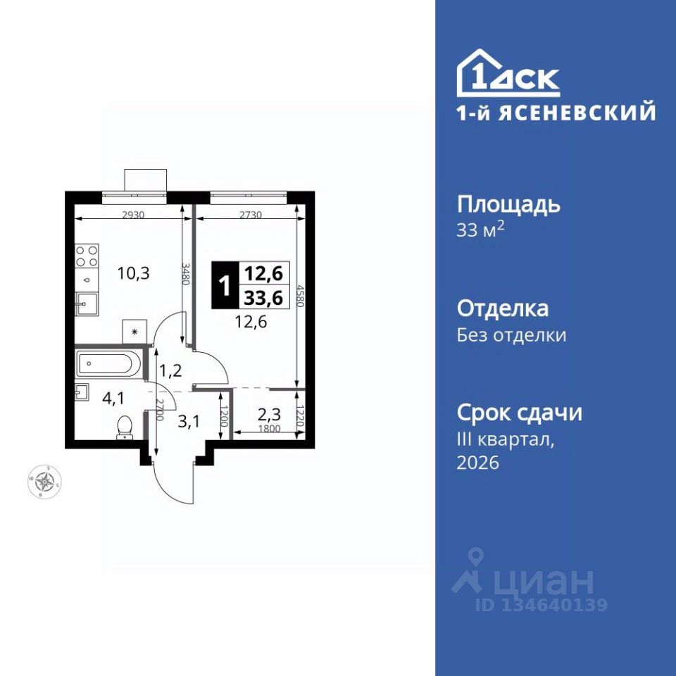 Продаётся 1-к квартира номер 27 общей площадью 33.6 кв.м. на 5-м этаже 16 этажного здания. Без отделки.