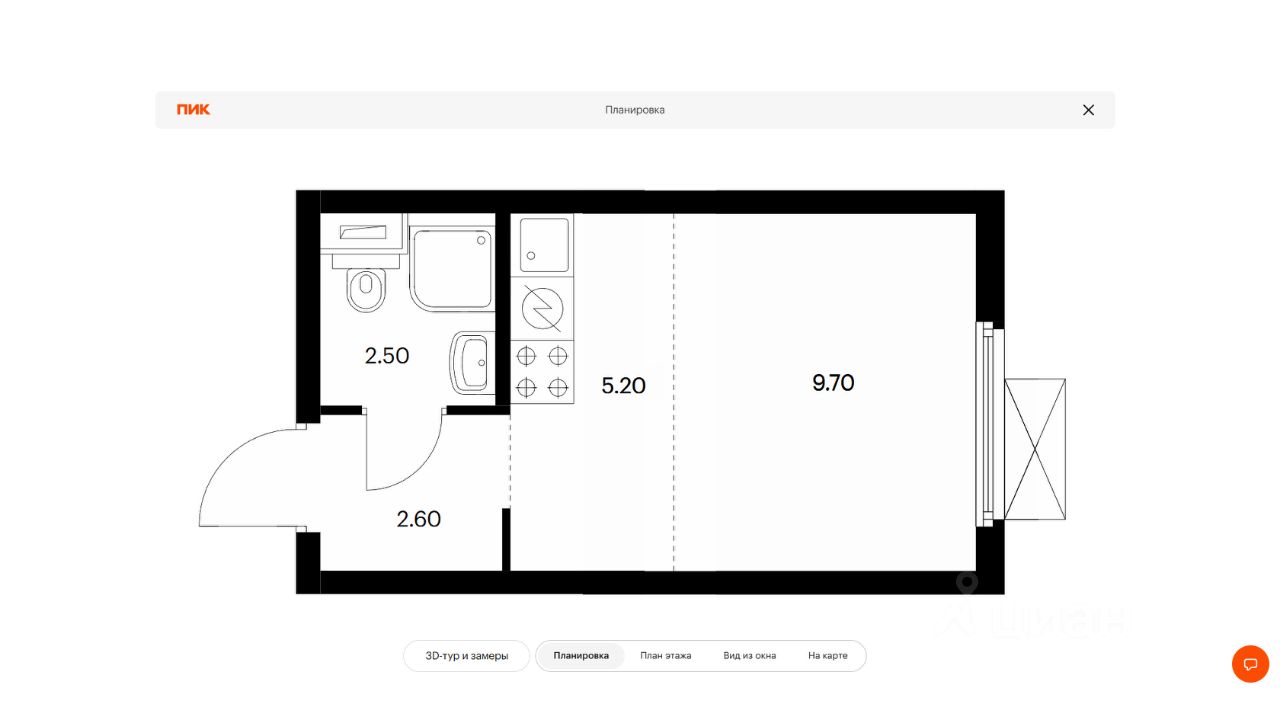 Квартира студия с чистовой отделкой от застройщика.