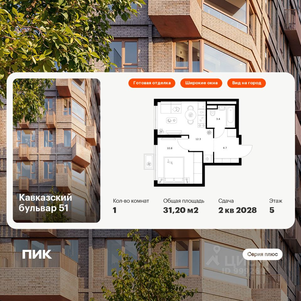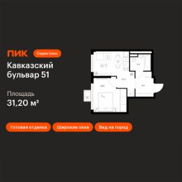 Продаётся 1-комн. квартира площадью 31,2 кв.м на 5 этаже 23 этажного дома (Корпус 3.1, Секция 1) проекта ПИК Кавказский бульвар 51. Светлый просторный подъезд на уровне земли, функциональная планировка, большие окна, c отделкой.