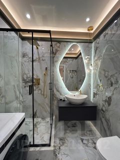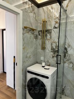 - Санузел: унитаз с инсталляцией, стиральная машина с сушкой, душевая кабина, широкий умывальник с тумбой.