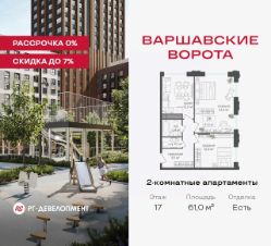 Продаются 2-комнатные апартаменты 61,0 кв.м. в МФК "Варшавские ворота" на 17-м этаже 30 этажного дома. МФК "Варшавские ворота" — это проект, в котором учтен широкий спектр требований: от транспортной доступности и развитой инфраструктуры до архитектурной выразительности и экологического окружения.