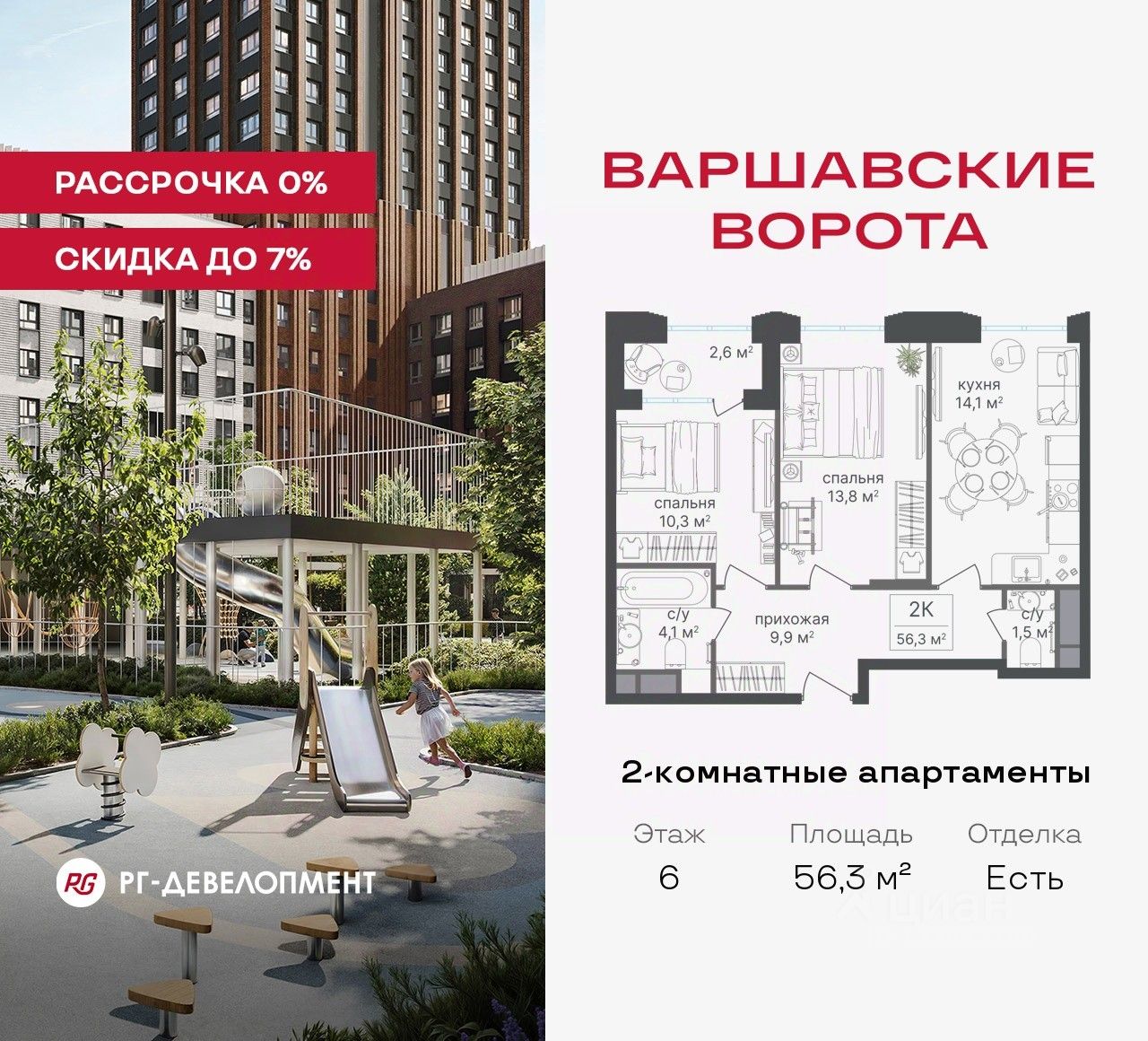 Рассрочка 0% + скидка 5%. Первый платёж 50% при ДДУ, второй 50% — через 12 мес. до ввода ЖК.