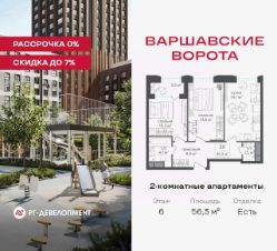 Продаются 2-комнатные апартаменты 56,3 кв.м. в МФК "Варшавские ворота" на 6-м этаже 30 этажного дома. МФК "Варшавские ворота" — это проект, в котором учтен широкий спектр требований: от транспортной доступности и развитой инфраструктуры до архитектурной выразительности и экологического окружения.