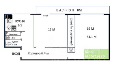 Хороший метраж - 51.1 м2 , две большие изолированные комнаты 19 м2 и 15 м2. Кухня 6.5 м2. Просторный коридор и невероятно огромный застеклённый балкон 8 м2 со свежим ремонтом.