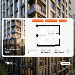 Продаётся 1-комн. квартира площадью 34,5 кв.м на 22 этаже 32 этажного дома (Корпус 22.3, Секция 3) проекта ПИК Бусиновский парк. Светлый просторный подъезд на уровне земли, функциональная планировка, большие окна, c отделкой.