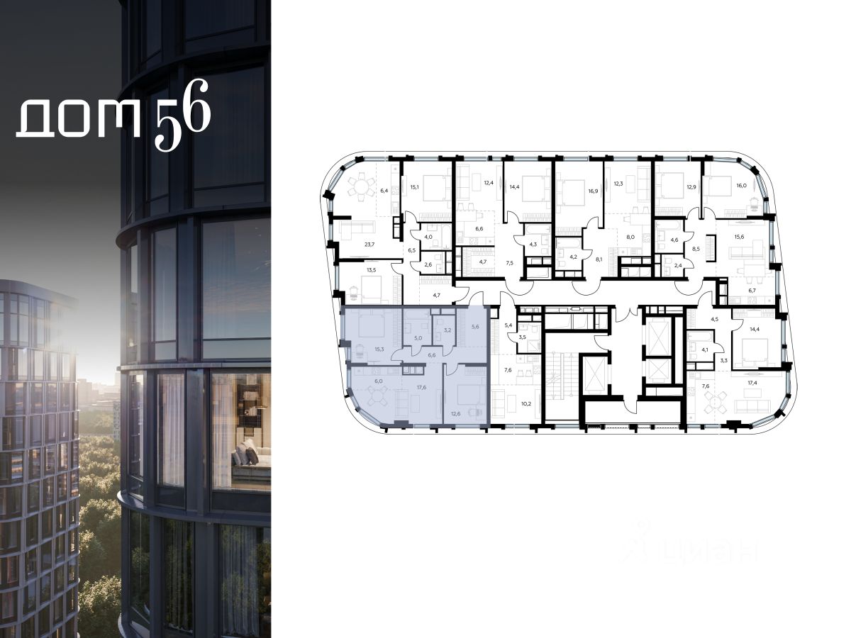 Архитектурный стиль "Дома 56" - параметрический минимализм. Футуристические фасады квартала с "эффектом закручивания" словно вращаются вокруг своей оси. Динамичный образ башен дополняет эффектное остекление - окна в пол будут в каждой квартире.