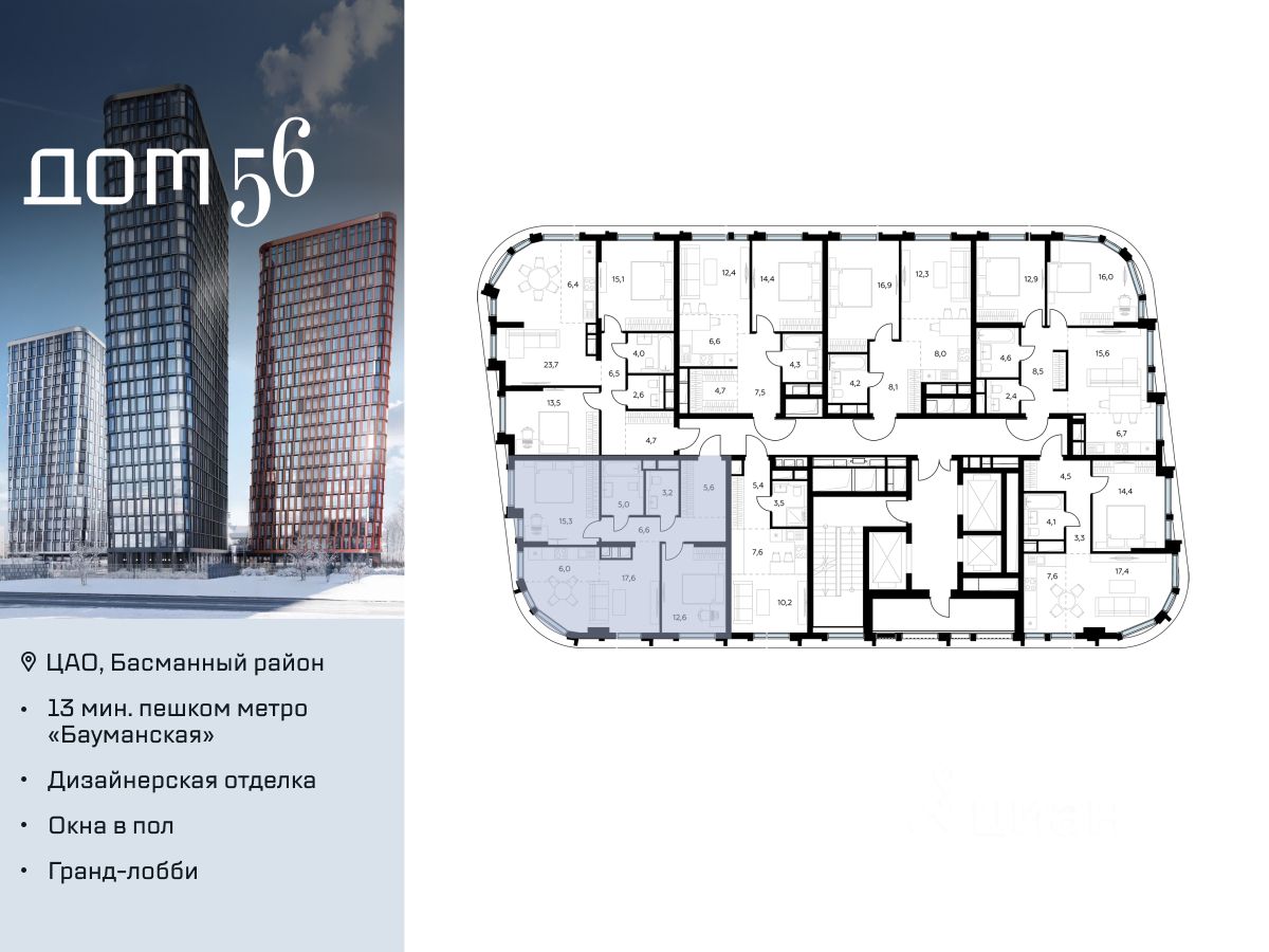 "Дом 56" - расположен в Басманном районе на ул. Фридриха Энгельса, всего в 12-15 минутах пешком от станций метро "Бауманская" и "Электрозаводская".