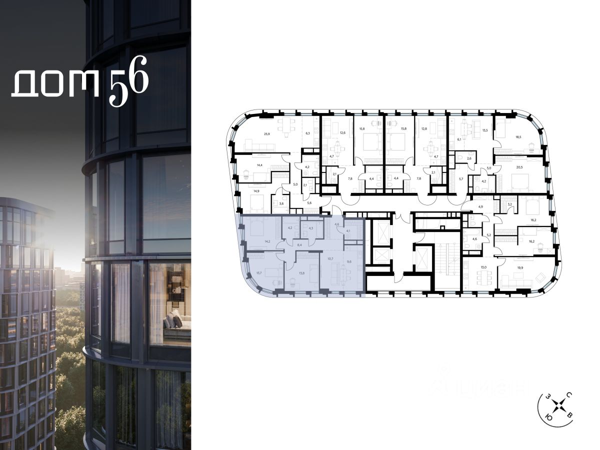 Архитектурный стиль "Дома 56" - параметрический минимализм. Футуристические фасады квартала с "эффектом закручивания" словно вращаются вокруг своей оси. Динамичный образ башен дополняет эффектное остекление - окна в пол будут в каждой квартире.