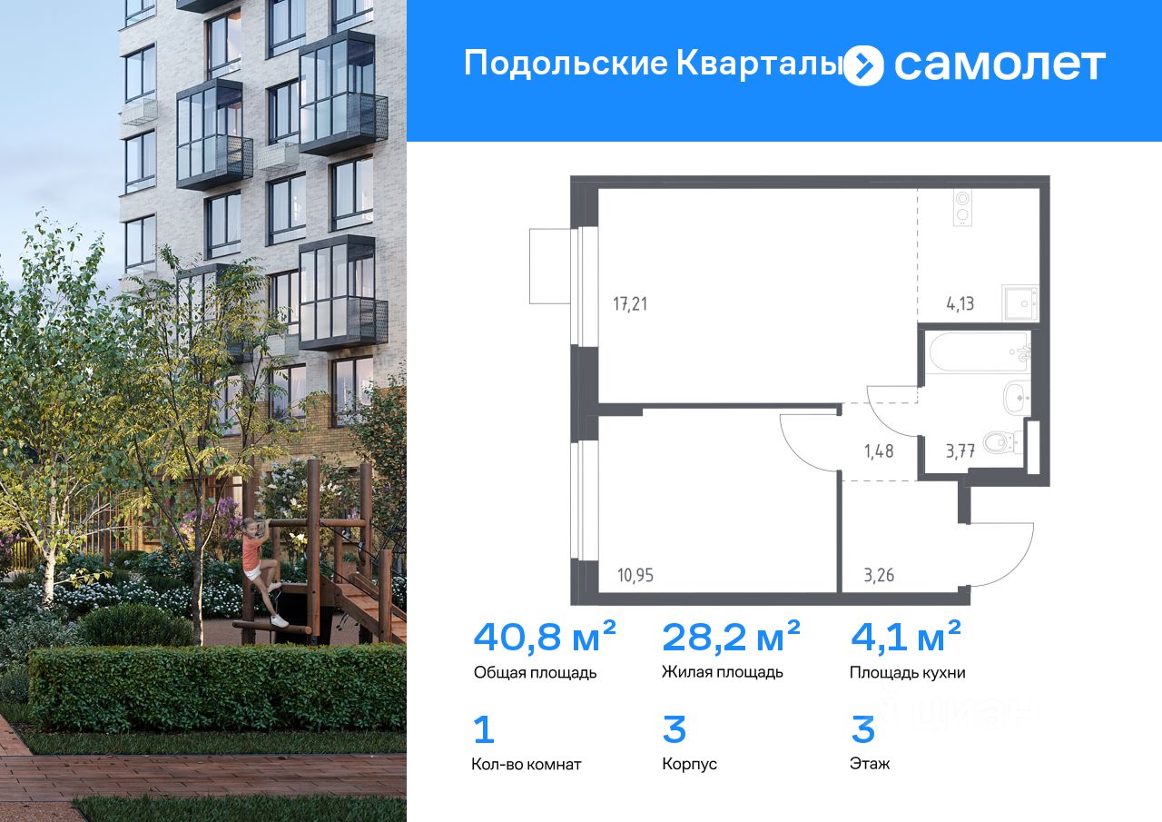 Строим кварталы для жизни с заботой о будущем. Предлагается 1-комнатная квартира комфорт-класса 40,8 кв.м в корпусе 3 на 3 этаже, в ЖК "Подольские Кварталы"