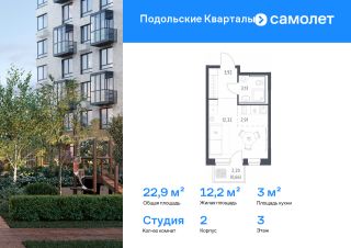 Строим кварталы для жизни с заботой о будущем. Предлагается квартира студия комфорт-класса 22,94 кв.м в корпусе 2 на 3 этаже, в ЖК "Подольские Кварталы"