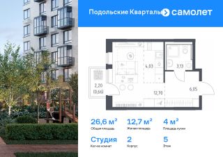 Строим кварталы для жизни с заботой о будущем. Предлагается квартира студия комфорт-класса 26,57 кв.м в корпусе 2 на 5 этаже, в ЖК "Подольские Кварталы"