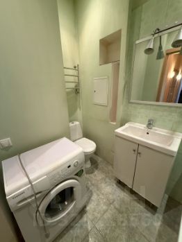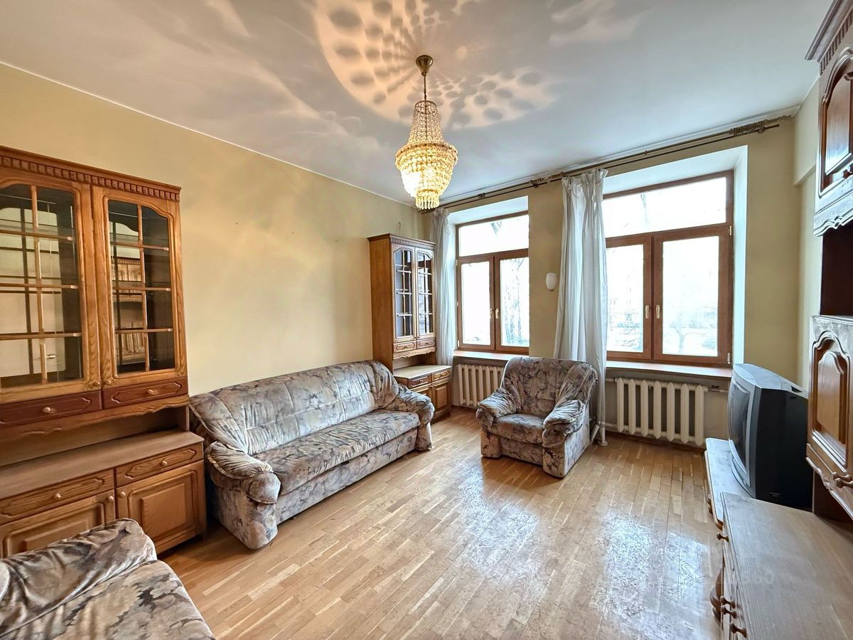Общая площадь 54 кв.м., изолированные комнаты 21 кв.м. и 17 кв.м., кухня 11 кв.м., совмещенный санузел, просторный коридор, отдельная гардеробная комната. Потолки 3 м. Окна смотрят на Ленинский проспект (установлены стеклопакеты с повышенной шумоизоляцией). От дороги дом отделен зеленой пешеходной зоной.