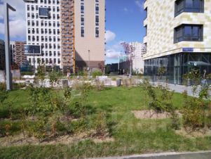 Просторная входная группа, видеонаблюдение, помещение для колясок и велосипедов, подземная парковка. Двор в зелени, детские, спортивные площадки.