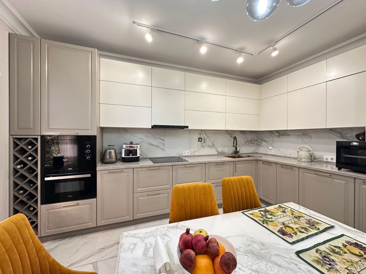 В квартире выполнен качественный дизайнерский ремонт в светлых тонах с яркими акцентами, все продумано до мелочей, освещение с функцией движения ,встроенный пылесос, измельчитель для продуктов, теплые плинтуса, все дополнительные мелочи, которые существенно облегчают жизнь!