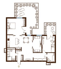Две спальни по 14м2 с прямым выходом на индивидуальные террасы 40м2 и 10м2, где можно оформить лаунж-зоны на открытом воздухе и наслаждаться утренним кофе или уютными вечерами. Комната 11м2 легко адаптируется под ваш ритм жизни - рабочий кабинет или гостевую комнату, решать вам.