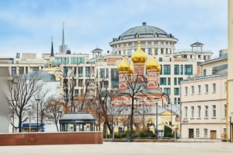 панорамные окна открывают захватывающий вид на церковь Николы на Щепах-объект культурного наследия