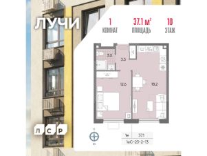 Продается 1-комнатная квартира общей площадью 37.1 кв. метров на 10 этаже жилого комплекса Лучи.