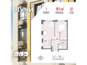 Продается 1-комнатная квартира общей площадью 39.5 кв. метров на 22 этаже жилого комплекса Лучи.
