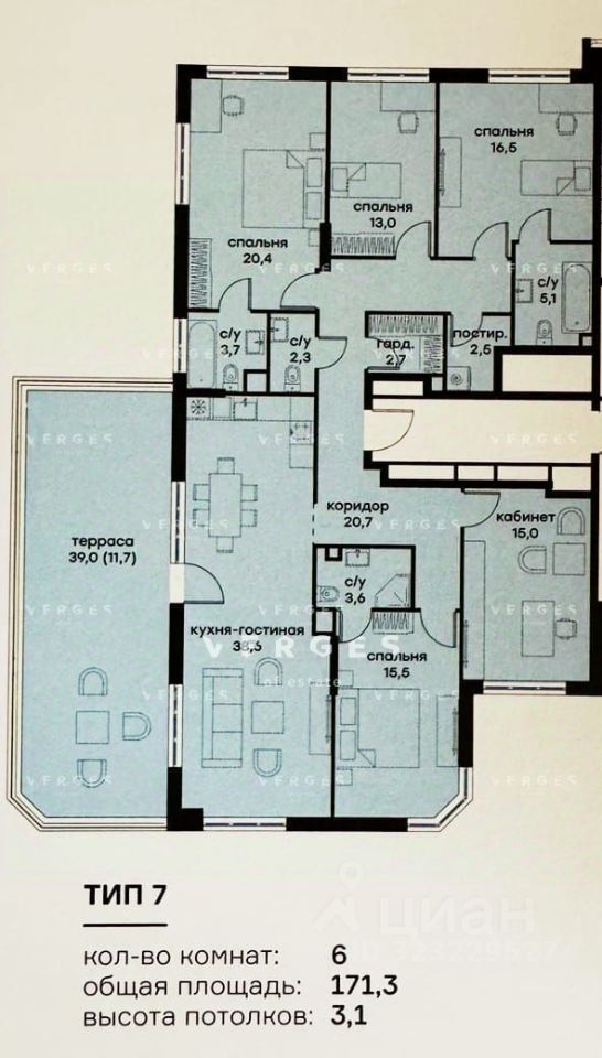 Представляем вам квартиру мечты для требовательных покупателей! Уникальное предложение в ЖК бизнес-класса "Событие-3" — просторная 5-комнатная квартира с собственной террасой 39 кв.м!