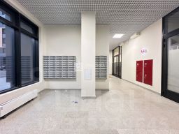 - Квартира располагается на 12-м этаже 22-ти этажного монолитного дома, с двумя пассажирскими и одним грузовым лифтами, просторной входной группой с витражным остеклением и безбарьерной средой, колясочной и помещением для мытья лап, а также подземным паркингом. Полностью обустроенный двор с детскими и спортивными площадками, освещением и камерами видеонаблюдения. Предусмотрена концепция "двор без машин". Замечательные соседи.