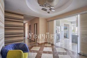 - Просторную кухня-гостиная, оборудованную бытовой техникой Kupersbusch, Liebherr (посудомоечная машина, духовой шкаф, кофемашина, холодильник, холодильник для вина),