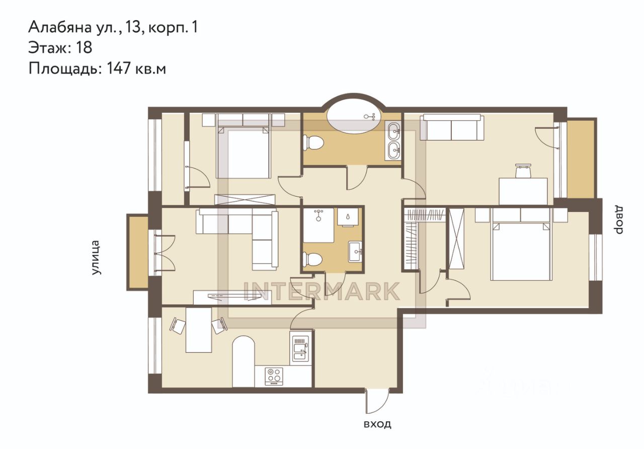 Комфортная планировка: кухня, просторная гостиная, 3 спальни (у двух из которых предусмотрены выходы на собственные лоджии), гардеробная комната, 2 с/у. Из окон открывается красивая панорама на зеленый район.