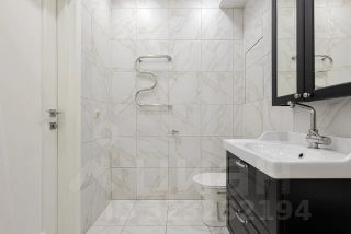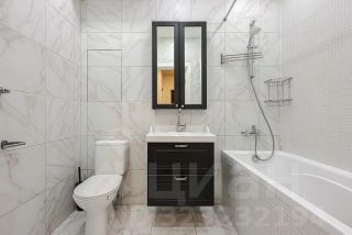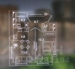 Линейная планировка: спальня 15.3м2, кухня-гостиная 18.4м2, просторный коридор 6.7м2 и два санузла (один из них гостевой)