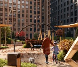 на территории зеленые супер-дворы со спортивными площадками, детскими зонами и пространством для отдыха. в центре кварталов расположится благоустроенный парк с фонтаном и удобной уличной мебелью.